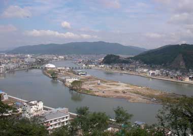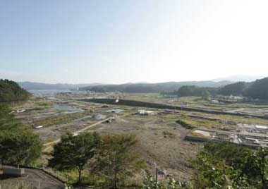 「石巻市」 日和山公園高台からの海側の町の眺め。ほとんどの建物は流される