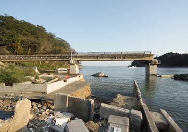「南三陸町歌津」 鉄橋が流されるほどの高い波が押し寄せたようです